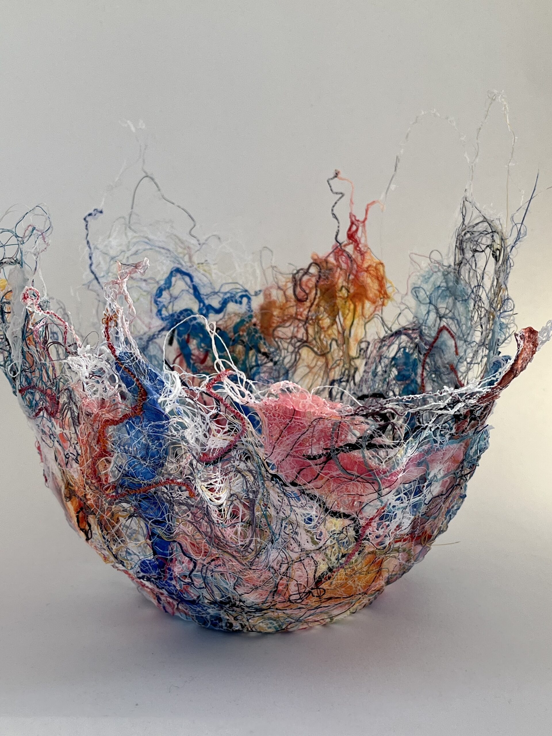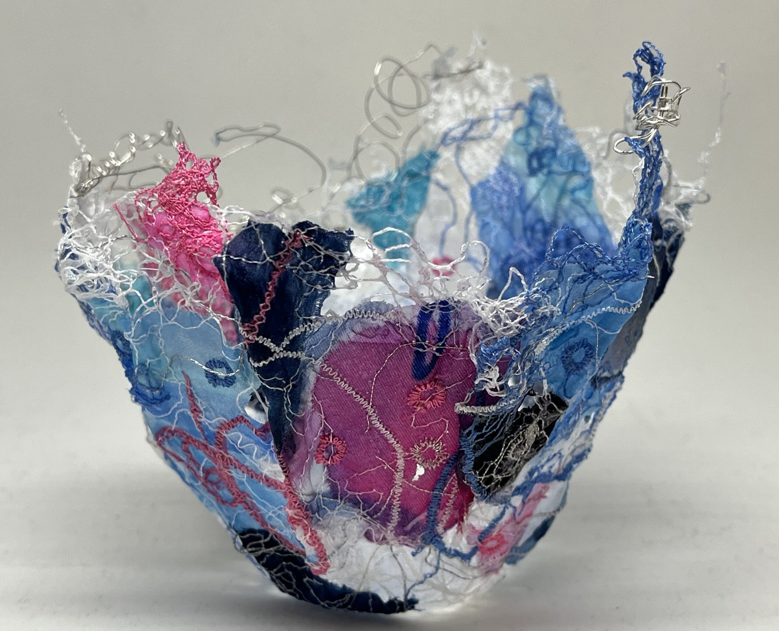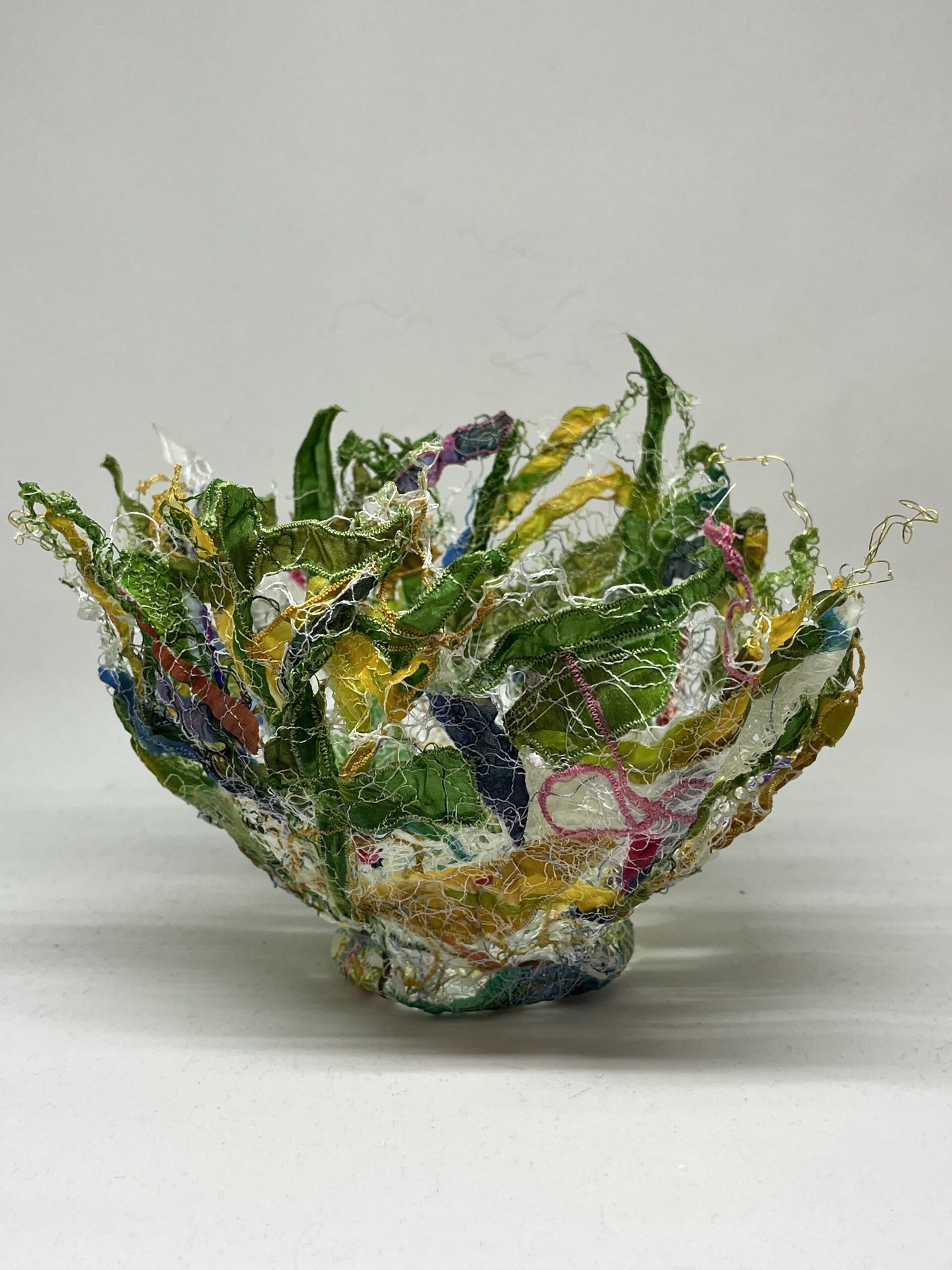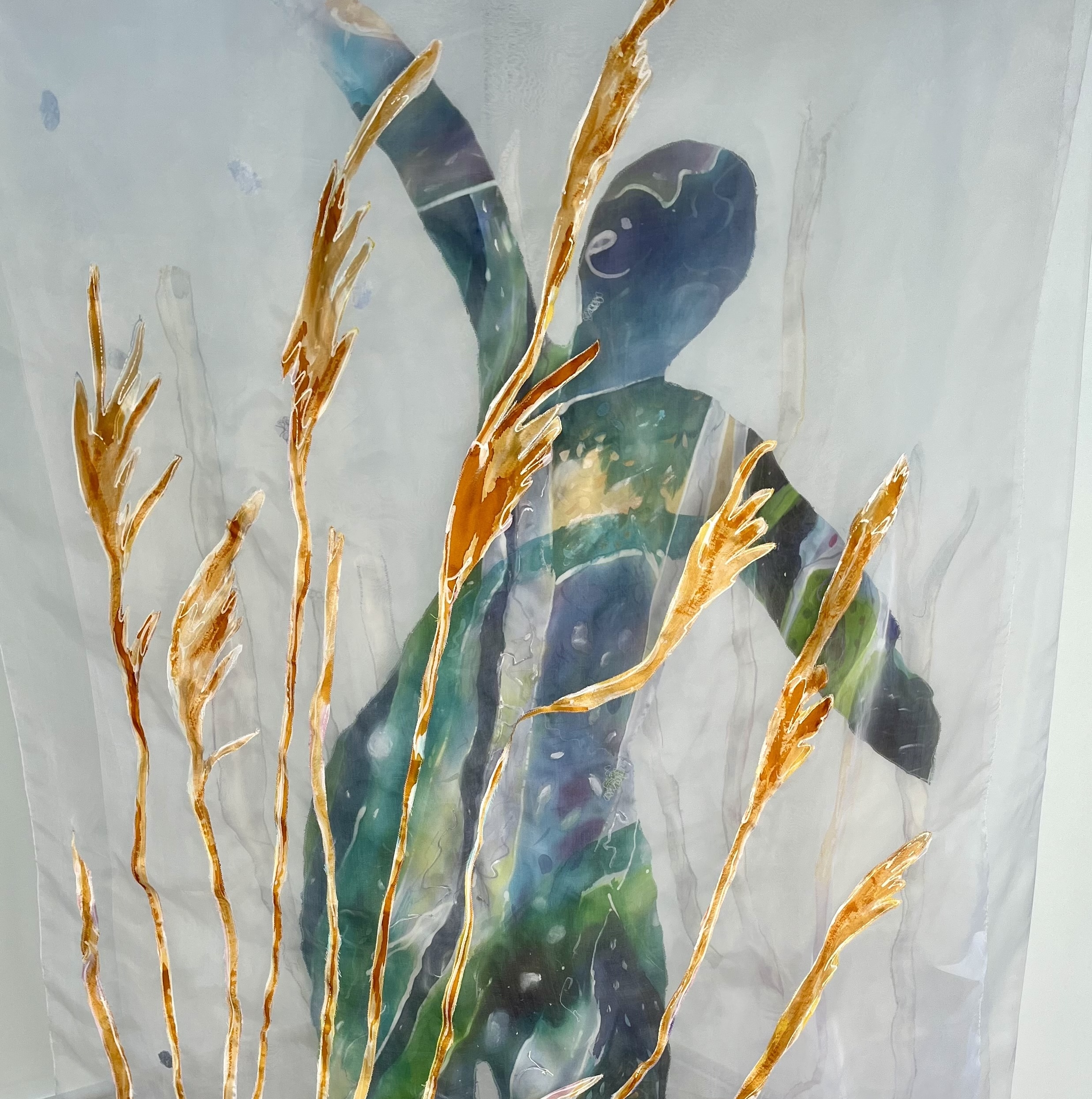 My silk collages, soft sculptures, wearable art, and installations are deeply rooted in the delicate balance of the fragile marine and coastal environment of rural Nova Scotia where I live. Each piece is informed by the colours, textures, and movement found in nature.