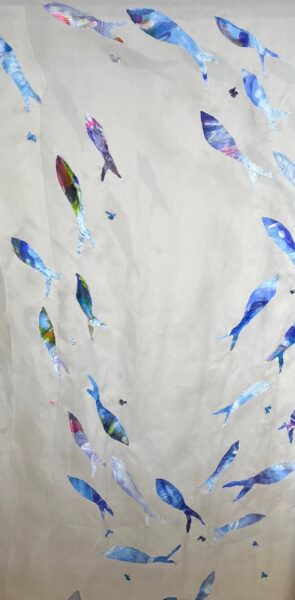The Feel of Water”, explores our relationship to both the physical and symbolic properties of water. The exhibit invites the viewer to consider the beauty, power, fragility, and rhythm of water. Using silk and paper, I will showcase interactive installations and soft sculptures. Visitors to Chester Art Centre can immerse themselves in large-scale silk hangings and contribute their thoughts about water on an interactive wall piece, fostering a collective response.